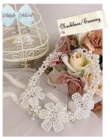 最後になりましたがパールでお花のカタチを作ったネックレス・イヤリングをご紹介します。