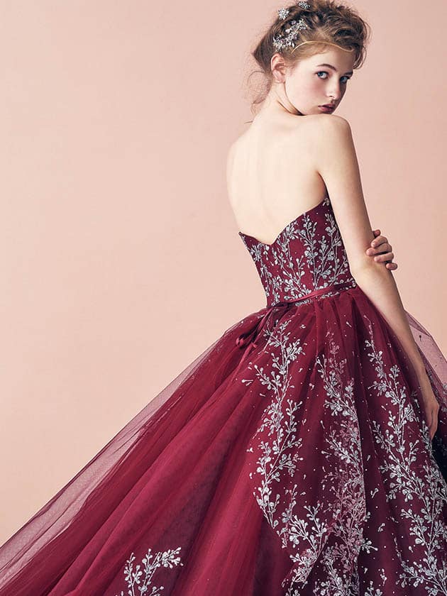 赤のドレスが定番ですが、そこをあえて大人っぽいボルドーを選んであげるとより大人の余裕と高級感が出るので、
