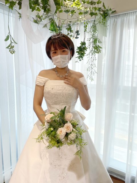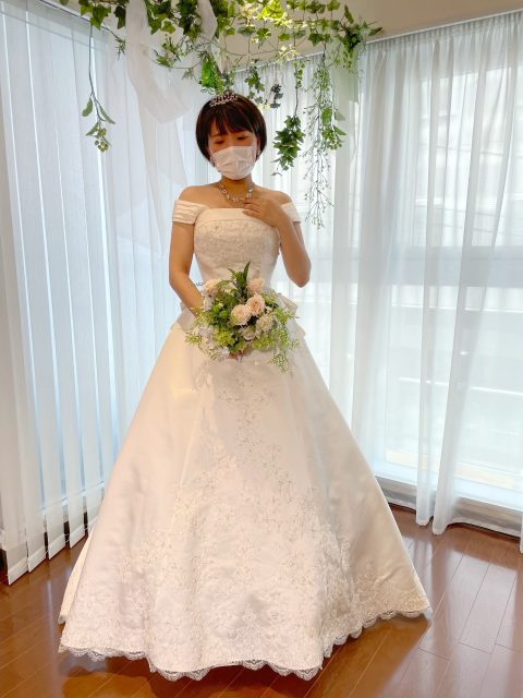 ウエディングドレスは王道のAラインシルエットを選ばれました♪