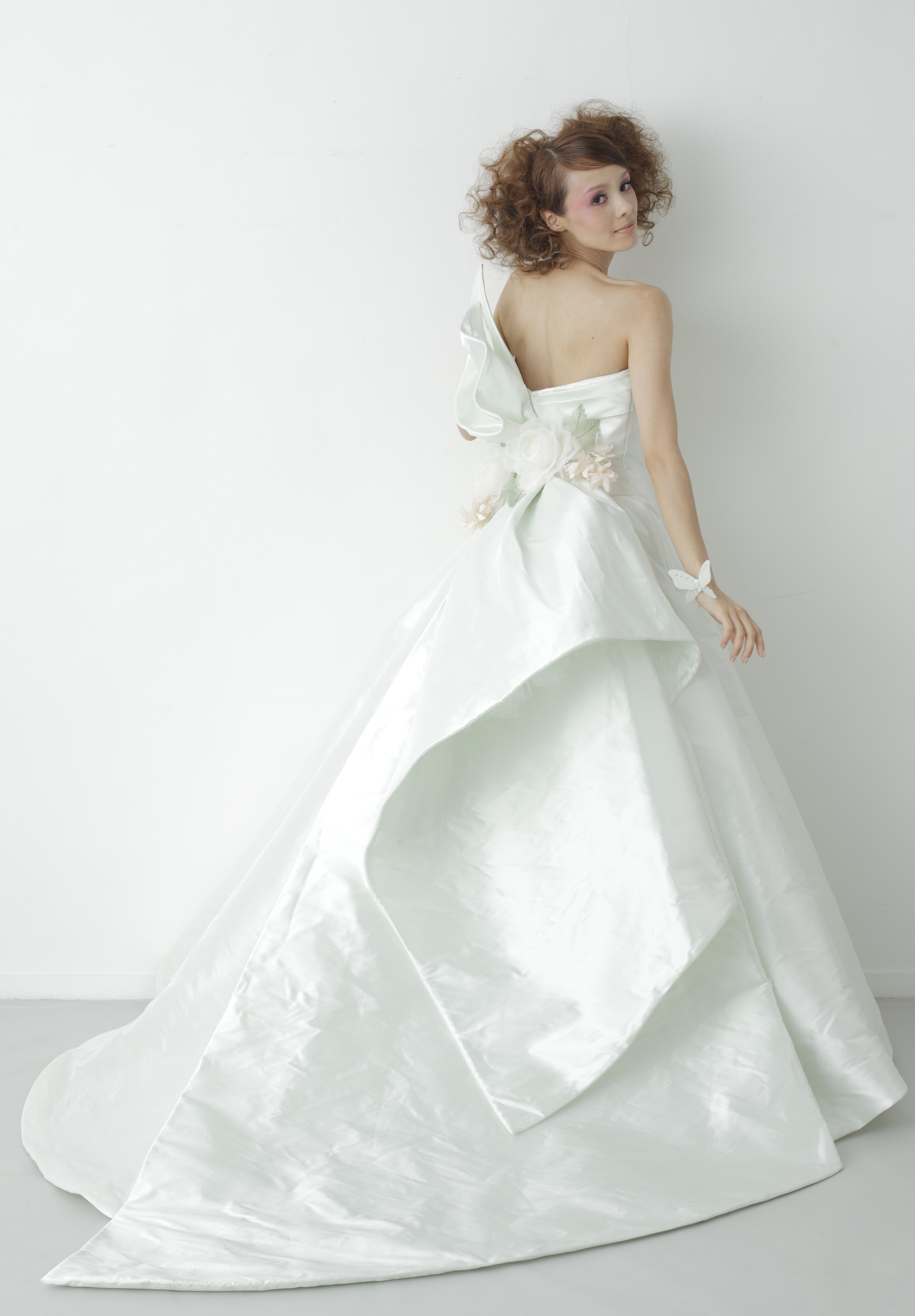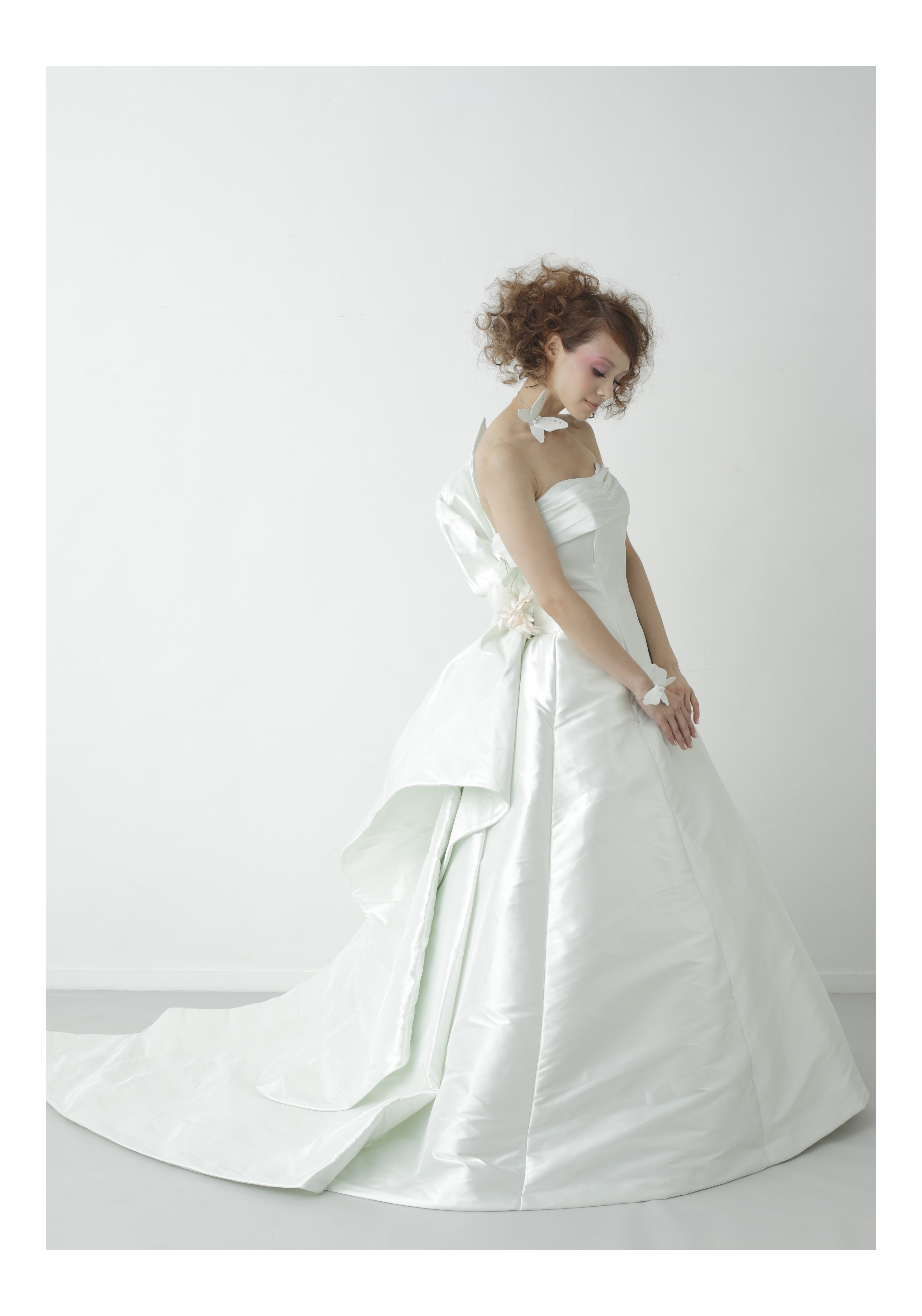 トレーン、ボリューム共に抑えたシルエットなので、レストランウエディングやアットホームは結婚式におすすめです☺