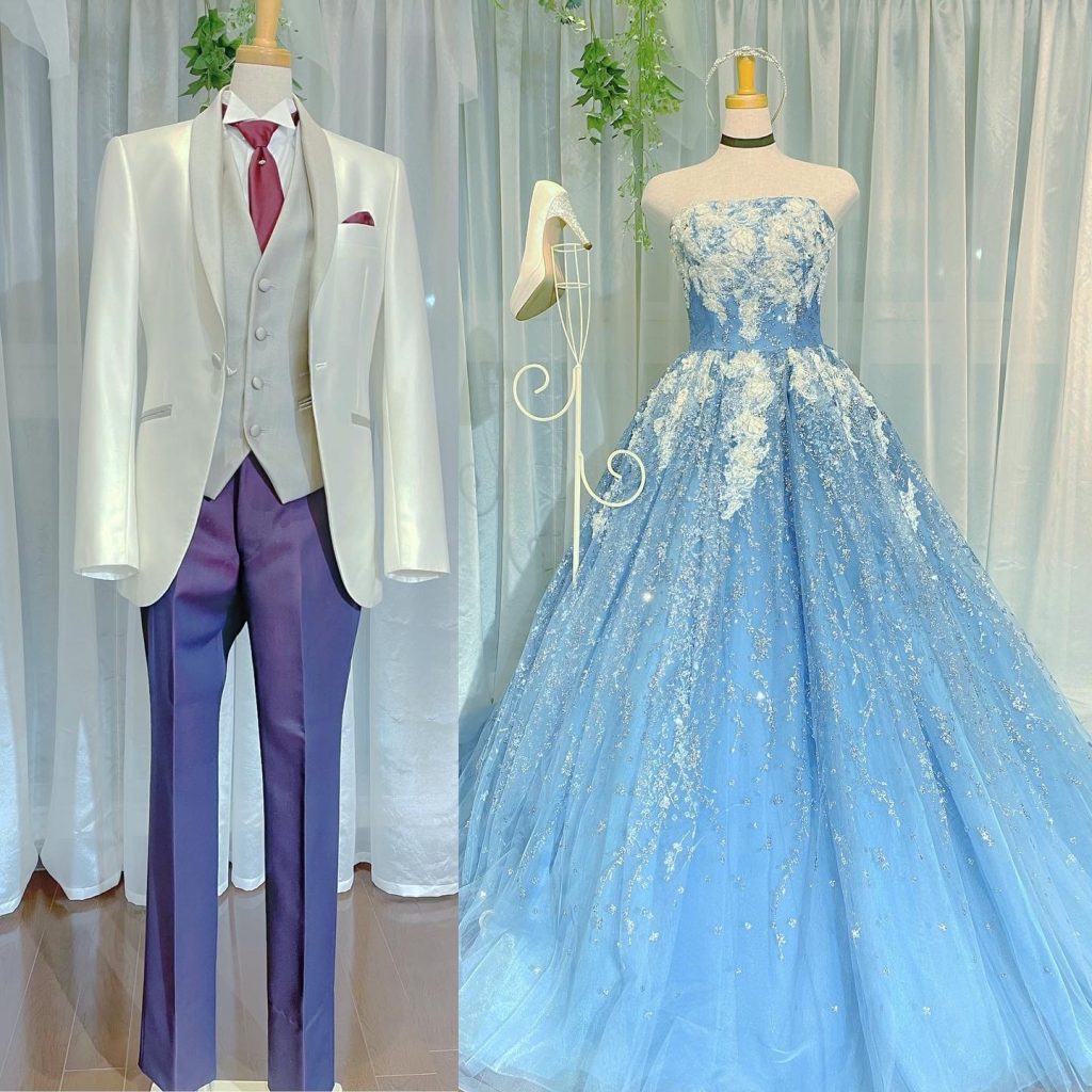 2022-01-26 / 最終更新日 : 2026-04-09 modemarieblog ドレス紹介 コーディネートのご紹介~シンデレラ~ ~シンデレラ~をテーマにしたコーディネートをご紹介します♡ Dress:ANTEPRIMA (160458) Tuxedo:ホワイト×ボルドー 色味が美しいブルーのドレス 新婦様が動く度にグリッターが輝きます✨ ビジューレースがとっても華やかです 首にはチョーカーを意識した黒のリボンを合わせました♡ ディズニーウエディングをテーマに考えていらしゃる方の少しでも参考になったら嬉しいです♡ ご試着予約はコチラ お問合せ・資料請求モード・マリエ本店: 03-3779-4781 営業時間:10:00~17:00 火曜日定休 ご試着・ご来店予約はこちらより 資料請求・お問合せはこちら