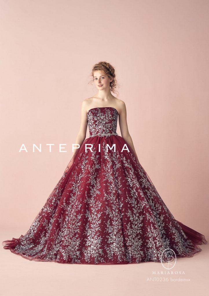 ボルドーが放つエレガントオーラに、ANTEPRIMAらしいグリッターの輝きをプラスした、主役感ある大人カラードレスです。