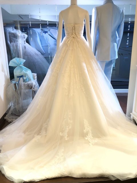 ふんわりとしたチュールのロングトレーンはとってもロマンチックで可愛いです♡